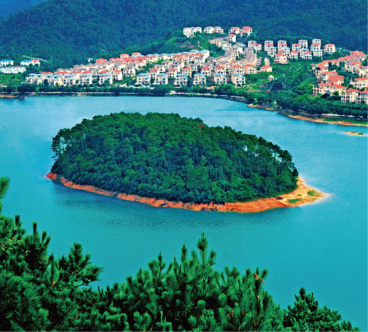芙蓉リゾート地区は山、林、湖、泉という景観を以て有名となり、優れた自然景色や神話伝説があり、沢山の人文古跡のある旅行勝地になっている。芙蓉峰は芙蓉山とも言い、海抜は360 メートルで、山々は幾重にも重なり合ったりして、半径の数十キロまで山上の石表面に墨色があり、しかも芙蓉花の形を示している。芙蓉峰に桃花水母が鑑賞できる可能性がある。桃花水母とは名実ともに活化石であり、極めて高い研究価値と観賞価値がある。