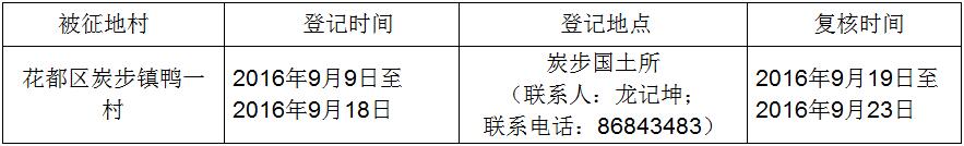 五、被征收土地四至范围内的土地所有权人、使用权人在本公告规定的期限内,持土地权属证书或其他有关证明材料,到指定的地点办理征地补偿登记,请互相转告。