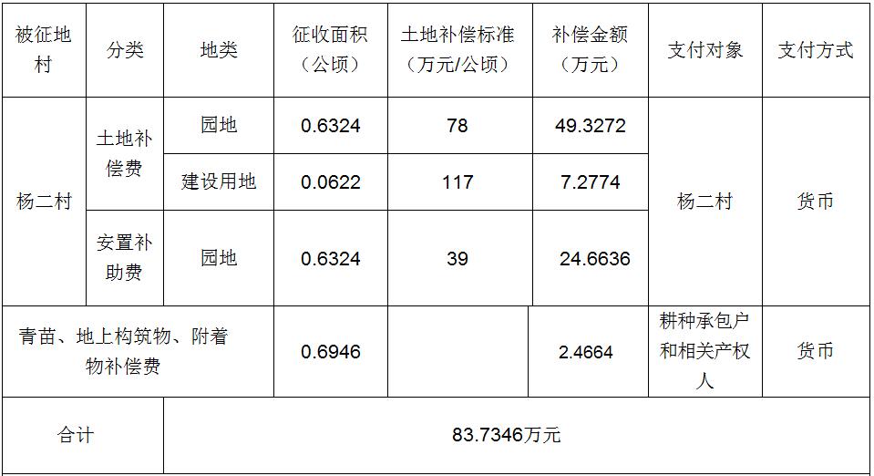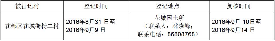 区花城街杨二村的集体土地0.6946公顷(合10.4190亩),其中园地0.6324公顷(合9.486亩),建设用地0.0622公顷(合0.933亩)。