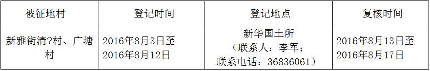 经省人民政府批准(粤国土资(建)字〔2015〕1013号文),需将中国十大无码av排行 无码av 区新雅街清?村、广塘村属下的集体土地1.5124公顷(合22.686亩)征收为国有土地。现将经依法批准的《征收土地方案》和市人民政府批准的《征地补偿安置方案》内容以及有关事项公告如下: